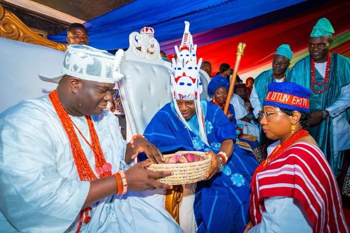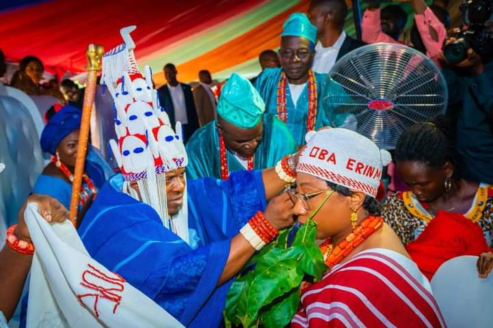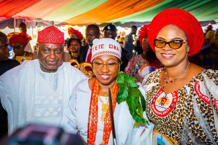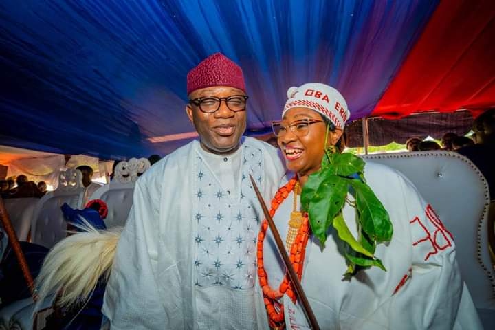 Governor fayemi also congratulate his wife, H.E Erelu Bisi Fayemi on her successful installation as Yeye Oba of Erinmope-Ekiti.