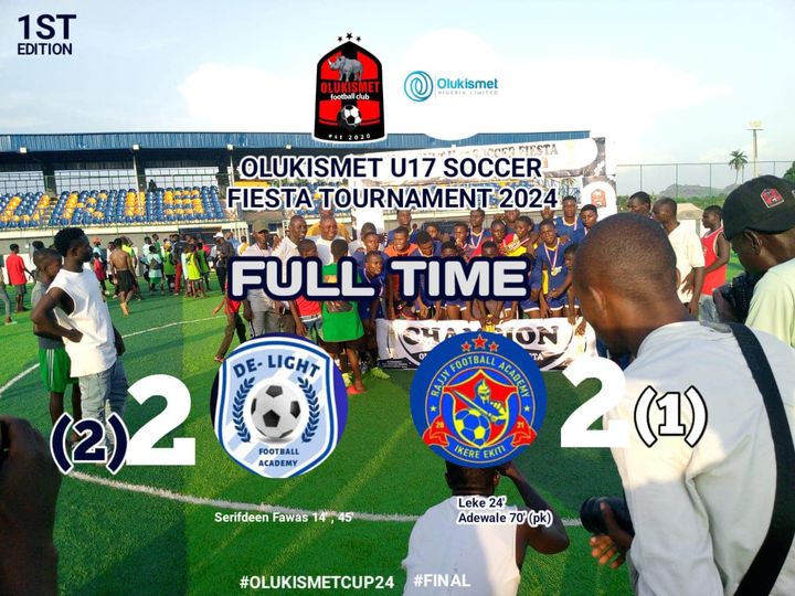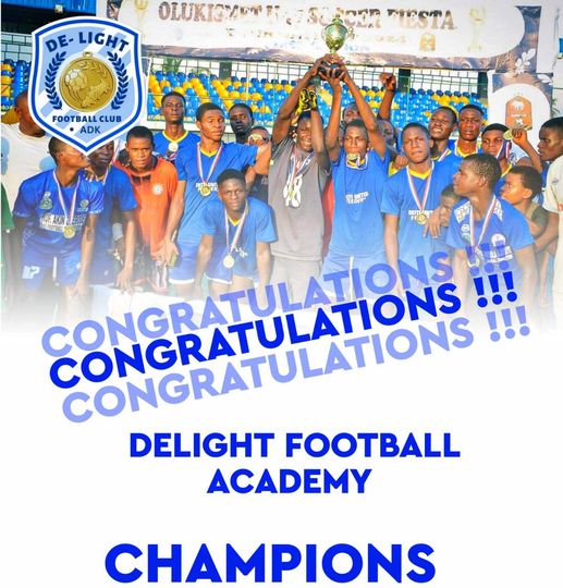 April 27, 2024May 16, 2024 BRAM DELIGHT FOOTBALL ACADEMY IS THE CHAMPIONS OF OLUKISMET U17 SOCCER TOURNAMENT 2024 DELIGHT FOOTBALL ACADEMY COACH FEMI CEO DELIGHT FOOTBALL ACADEMY Share this: Share on X (Opens in new window) X Share on Facebook (Opens in new window) Facebook Share on WhatsApp (Opens in new window) WhatsApp Like Loading... Related